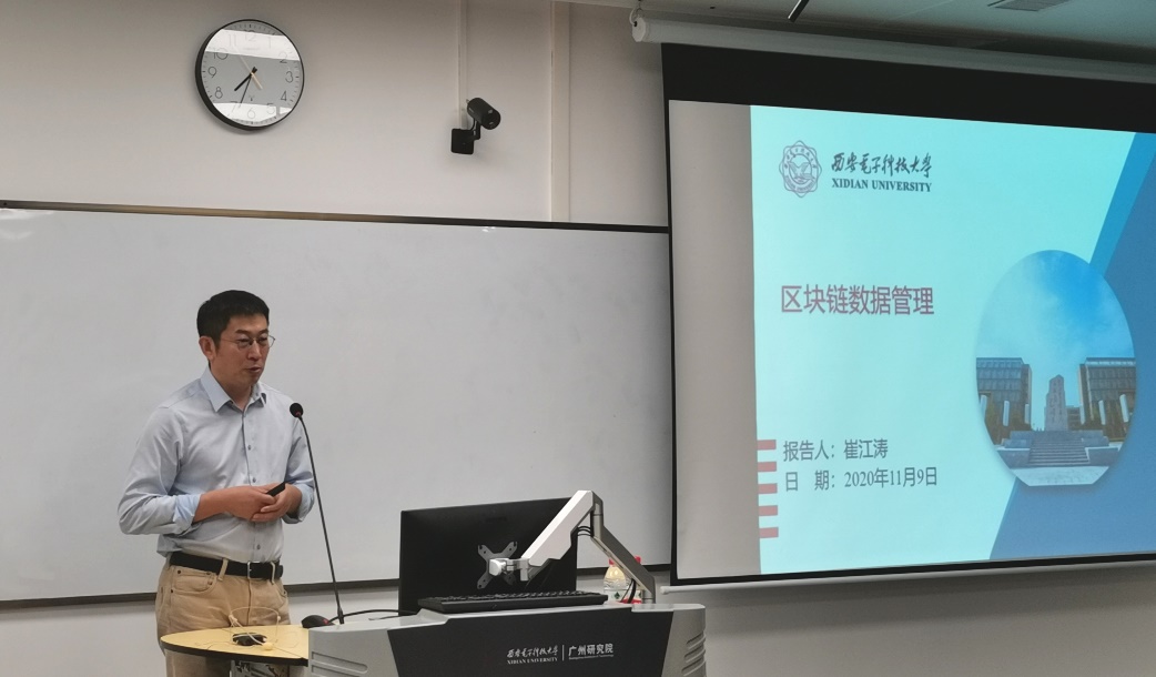 (通讯员 陈龙)为落实教育部和学校有关研究生培养的相关要求,加强今年会官方网站在穗研究生学业规划,11月9日晚,今年会官方网站执行院长崔江涛教授赴广州研究院,在黄埔区海丝知识中心B5栋201教室为80余名研究生做了题为“区块链数据管理”的学业导航报告,广州研究院执行院长沈八中、党委副书记刘涛等参加活动。