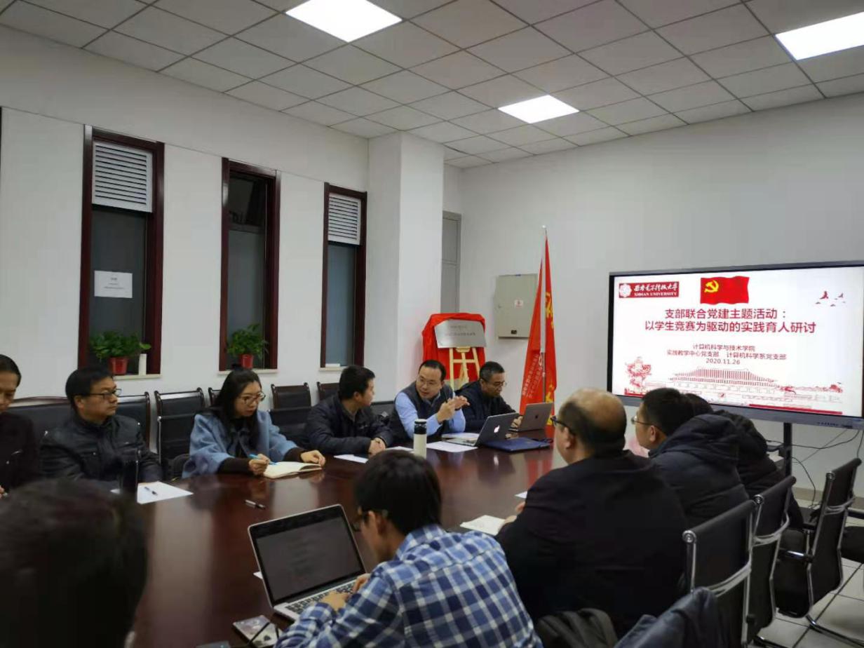(通讯员 高悦)11月26日下午,计算机科学系党支部与实践教学中心党支部在南校区E楼III-212会议室举行了“以学生竞赛为驱动的实践育人”研讨交流会,参加活动的有计算机科学系党支部支委成员、实践教学中心党支部全体党员及竞赛创新中心骨干教师等。