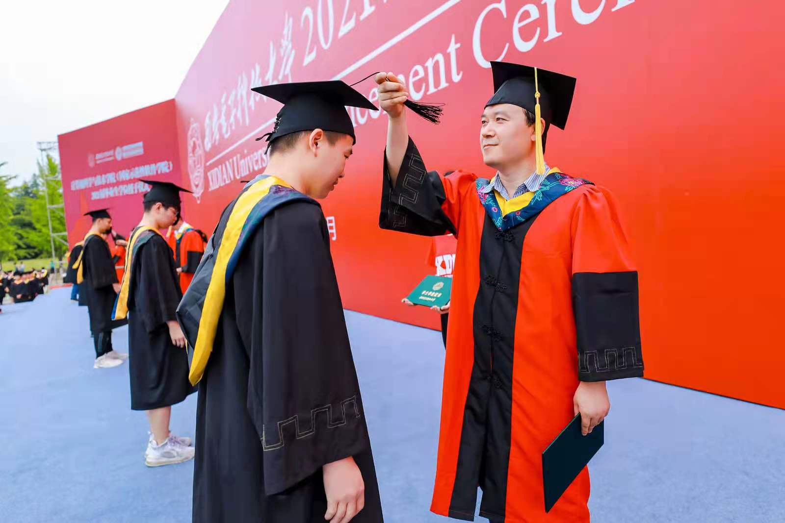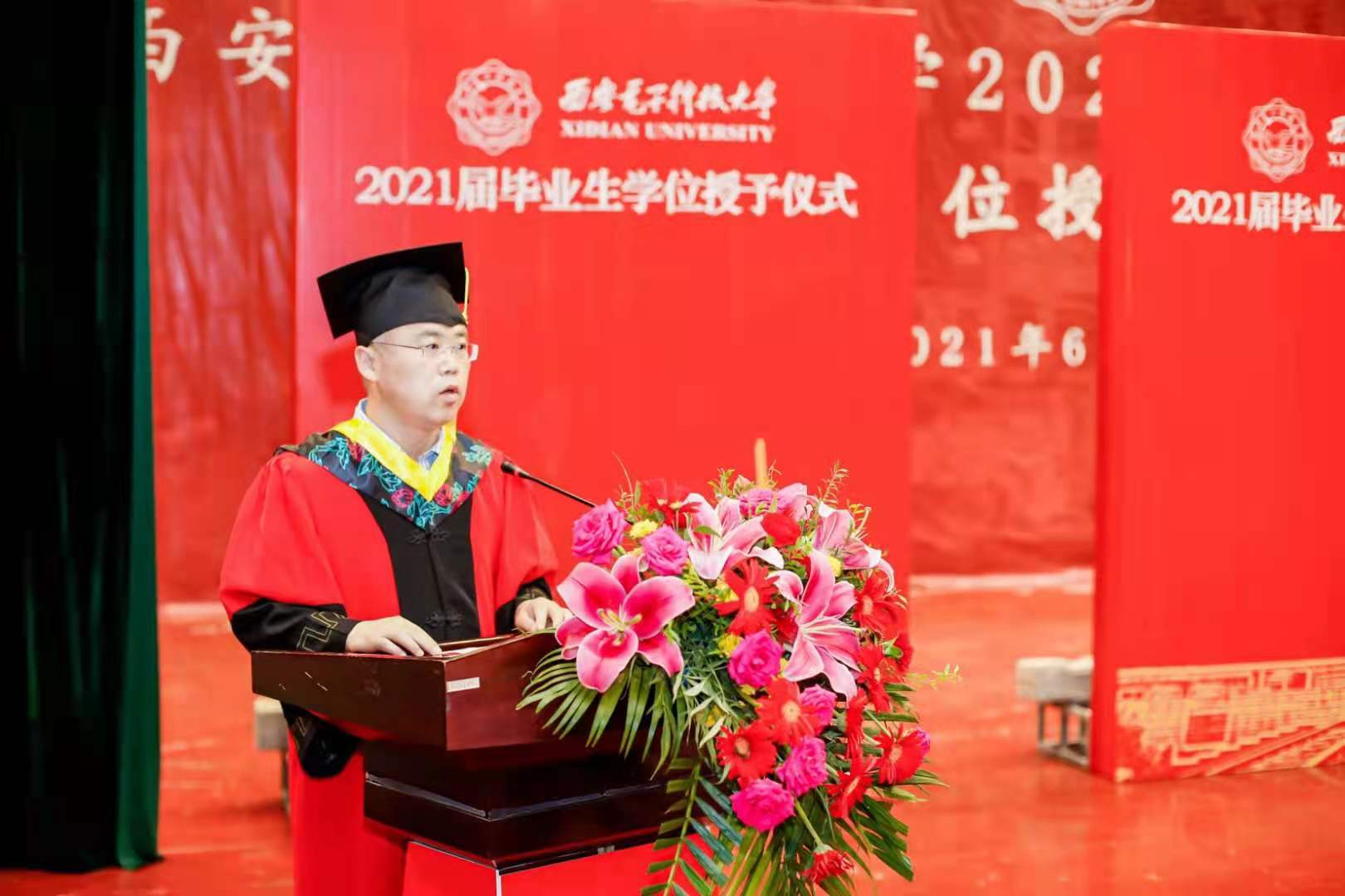 (通讯员 黄彩红 何敏之)庆西电九秩华诞,传三系奋斗精神;勇前行初心不改,瞰千里鸿鹄高飞。6月23日,今年会官方网站2021届本科毕业生学位授予仪式和研究生毕业生学位授予仪式先后在南北两校区成功举办。今年会官方网站副校长王泉教授出席仪式并为毕业生授位。学院党委书记李青山,执行院长崔江涛,学院教授委员会主任苗启广,副院长沈玉龙、宋胜利、万波为2021届937名本科毕业生以及506名硕博士毕业生现场一一拨穗授位。学院领导张卫东、赵韩强、张莹莹,毕业班辅导员、学院办公室人员和教师代表出席了仪式。仪式由院党委书记李青山主持。