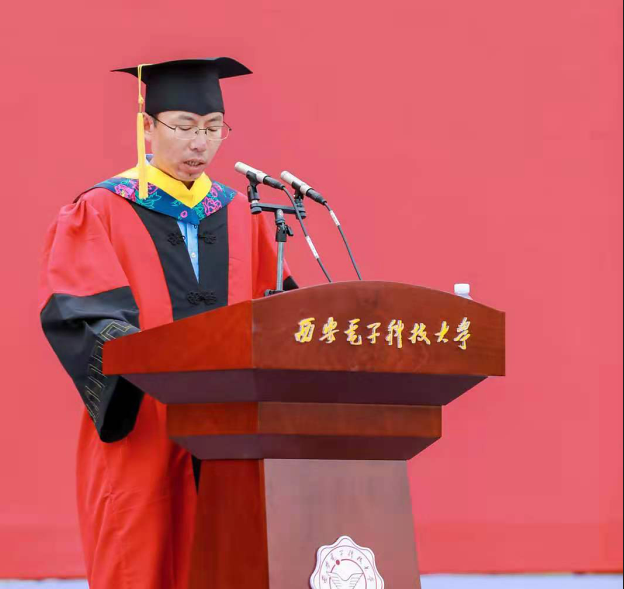 学院执行院长崔江涛教授深情寄语2021届毕业生。他希望同学们秉承西电“爱国为民”的家国情怀,以责任和担当诠释西电人的报国之志、爱国之情,“无论走多远,都不要忘了自己是西电人,是西电计算机人”;谨记西电“厚德”之校训,学会心胸开阔,能够关心、爱护别人,严于律己、宽以待人,“无论道多难,都不要忘了厚德载物”;谨记西电“求真”之校训,用专业的科学知识和严谨的科学态度,脚踏实地练好本领,在追求卓越的路上绽放出耀眼的光芒,“无论攀多高,都不要忘了求真务实”;谨记“励学”之校训,在巨大的变革中保持自己的独立思考的能力,坚持终身学习,持续进步,不忘四年的所学所思,以科学理性的态度继续求索,“无论走多长,都不要忘了励学精进”;谨记“笃行”之校训,用思考、声音和行动去做出改变,用头脑、心灵和脚步去把梦想变为现实。“无论行多久,都不要忘了深思笃行”。最后崔江涛希望同学们,在工作学习之余去拥抱生活,发展自己的兴趣和特长,文明精神,野蛮体魄。最后,他祝福计科学子们初心不改,鸿鹄高飞,前程似锦,一生平安。