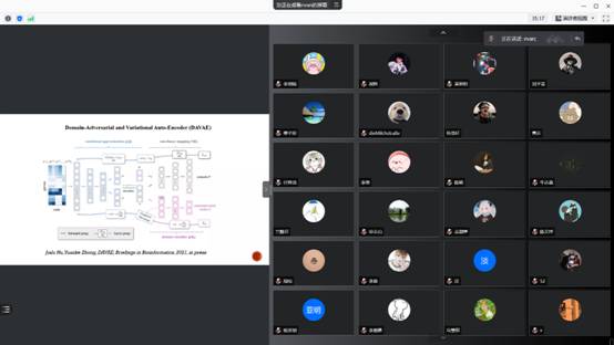 9月19日下午,西安理工大学李爱民博士、山东大学吴昊副教授、山东工商学院赵峰教授先后进行了详细精彩的报告。李爱民博士及其团队设计了一种强大的调控分析方法,以发现人类和小鼠之间的保守调控网络,从中确定了关键的microrna (mirna)靶基因,最终,通过保守的microrna - tf基因网络方法鉴定出了人类和小鼠腭裂中的关键microrna和调控基序。吴昊教授及其团队提出了一种基于单细胞Hi-C数据的高精度细胞分类算法scHiCStackL,该算法首先改进了现有的单细胞Hi-C数据预处理方法,使生成的细胞嵌入能更好地表示细胞,然后,构建了一个用于细胞分类的两层堆叠集成模型,最终,使用单细胞Hi-C数据预测细胞类型方面取得了卓越的性能。赵峰教授介绍了如何基于静息态磁共振数据,构建用于反映各个功能脑区之间深层次连接关系的高阶网络的方法,为深入理解脑神经活动规律、探索包括ASD在内容的诸多脑疾病的病因和辅助诊断提供技术支持。
