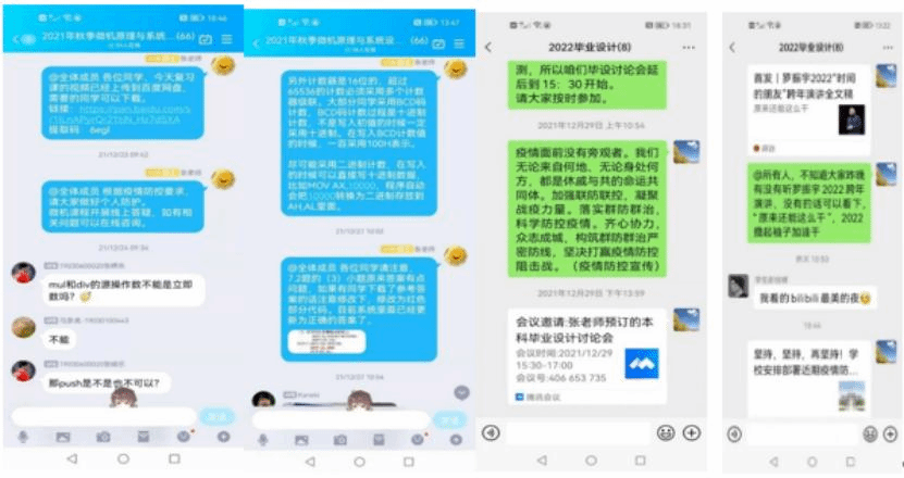 田玉敏、王笛老师结合疫情发展,及时调整了第二学位工程设计中期答辩方式,保证了学习实践进度;程飞、杨鹏飞、赵辉等嵌入式计算技术研究所青年教师在学术带头人王泉教授和团队负责人万波教授的指导下,结合研究生开题需求,组织了硕士开题专场研讨,帮助学生快速掌握报告撰写技巧和找准科研方向;张剑贤老师在完成课程教学内容基础上,积极开展线上答疑,保证了课程教学效果,同时与毕设同学建立线上联系,详细分析了每个毕业设计题目的要求及任务安排,讲述了如何进行文献资料的查找和分析整理,并点评了多篇优秀本科毕设论文。赵辉、王笛、夏小芳等青年老师还积极参与到学院组织的“同心战疫、云上学术”系列活动中,给大家带来了精彩的学术报告,为提升学生科研能力和学术水平贡献力量。