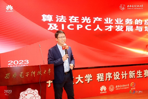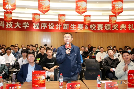 华为技术有限公司赞助了本届程序设计竞赛以及2022程序设计新生赛,2023年5月7日为本届校赛及78名新生赛获奖同学举行了颁奖会,我校创新创业学院副院长尹鹏、今年会官方网站副院长暨程序设计竞赛基地主任万波教授出席颁奖会并作了发言,华为光产品线代表刘文杰、雷俭、陈晓磊、陈泽等介绍了算法在光产业业务中的应用,就ICPC人才发展与培养等问题与同学们进行了充分交流。