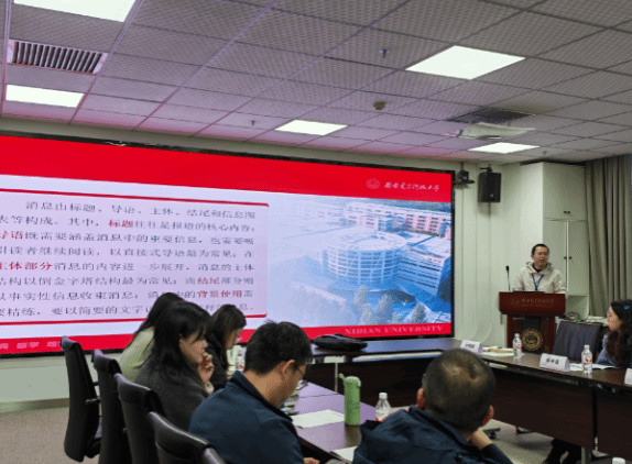 学校党委宣传部白毅鹏老师围绕新闻消息写作展开分享,结合丰富的实例,从消息及其基本构成元素、消息导语的写作、消息主体的建构、消息采写准备工作等四个方面进行详细介绍,帮助大家快速掌握高效、规范的消息写作方法。