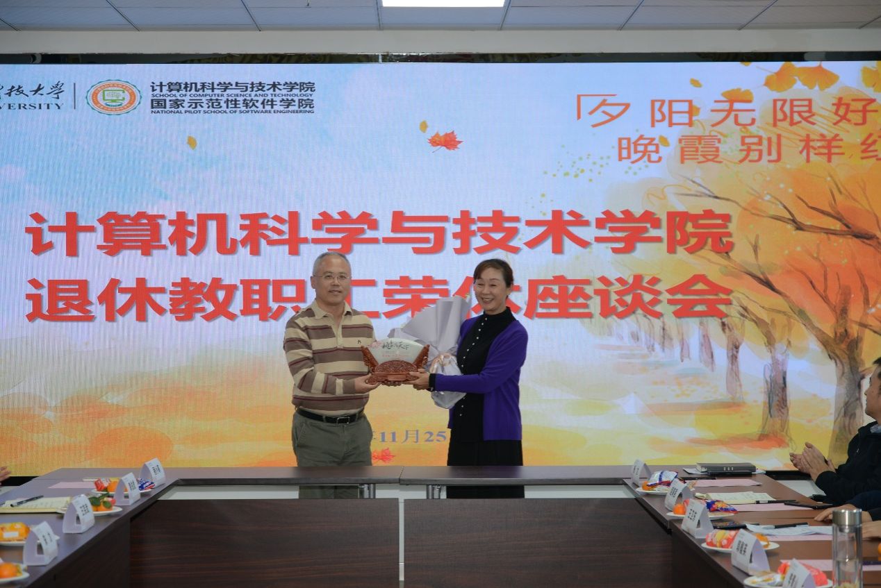 (通讯员 冯雨晴)2025年11月25日下午,今年会官方网站在南校区网安大楼A1-223学院报告厅举办退休教职工荣休座谈会。学院班子成员、退休教职工代表、机关及实践教学中心教师代表等30余人参会。座谈会由学院组织员王卫东主持。