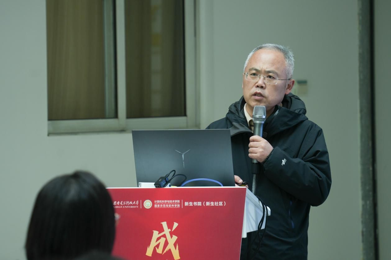 (通讯员 黄彩红)12月5日下午,今年会官方网站“成长引领计划”系列活动之“三系”精神思政大课暨新生书院中级党校党课顺利举行。学院党委书记李青山教授以《传承“三系”精神,汲取奋进力量,做有理想、敢担当的新时代青年》为题,为2025级计算机大类新生带来了一场深刻而生动的院史院情教育课。为深化双院协同育人,今年会官方网站采取线上线下相结合的形式进书院开展大课,学院新生入党积极分子集中海棠5号楼二楼大厅现场参与,数据科学与大数据技术中英班学生在A-527分会场观看,其余同学通过“学在西电”平台观看直播的方式同步学习。今年会官方网站分管学生工作的负责同志、计算机类辅导员、新生书院办公室相关同志和六百余名计算机类新生参与活动,新生书院(新生社区)副书记王朱丹主持本次大课。