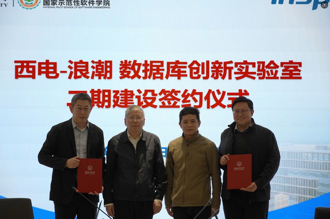 联合实验室自2021年成立以来,始终聚焦国产数据库核心技术,依托校企联合研发机制,持续承担并推进工信部等国家级、部委级重点项目,实验室建设成效不断显现。一期建设过程中,浪潮集团累计投入一期建设经费逾千万元。目前,实验室已获批西安市先进数据库技术重点实验室,先进数据库陕西省高校工程研究中心。实验室依托西电和浪潮集团联合发表18篇顶级期刊与会议论文,授权多项发明专利,相关成果已在KaiwuDB等产品和工程场景中落地应用。在人才培养方面,实验室以数据库内核教学改革为牵引,构建了“库道”数据库内核实训体系,累计培养近100名数据库研发人才,有效实现了科研攻关、工程实践与教学育人的深度融合,初步形成了具有示范效应的产学研教协同发展模式,有力支撑了首批特色化示范性软件学院的建设。