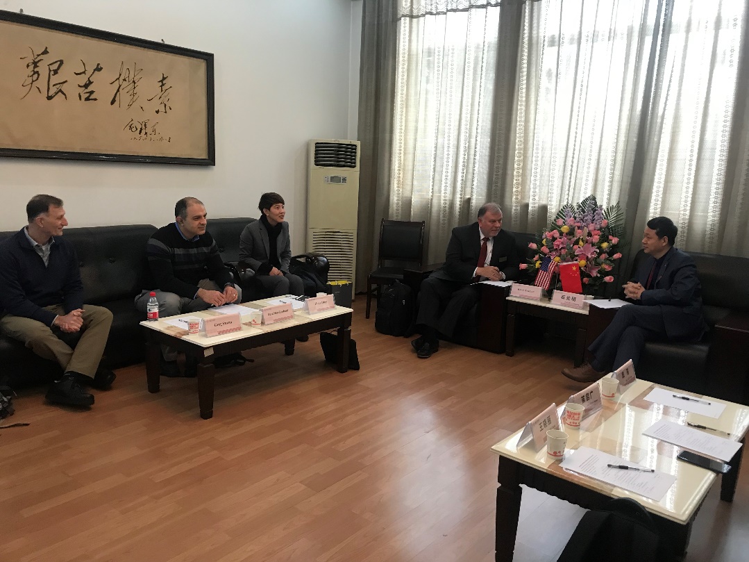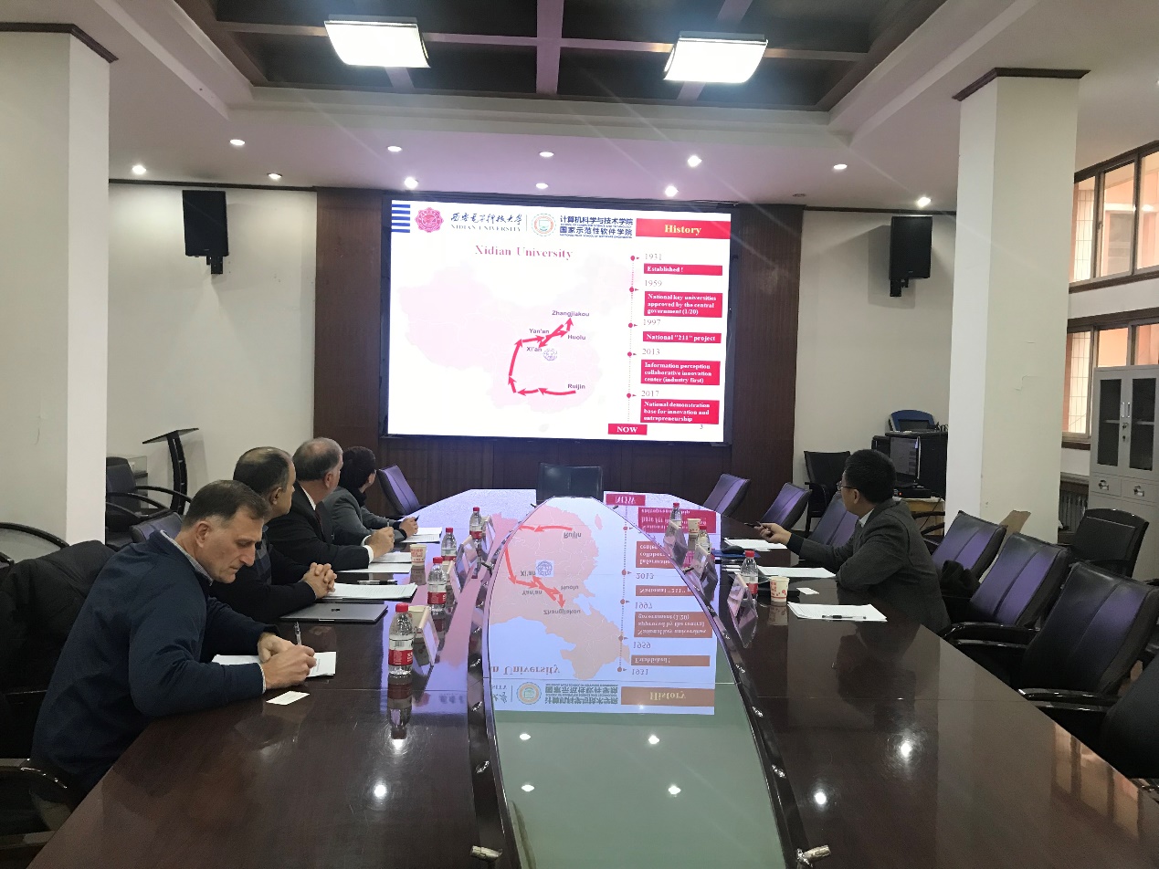 (通讯员 马丽叶 王晓丽)2018年12月7日上午,美国密苏里大学堪萨斯分校副校长Kevin Truman教授一行来访我校。计算机学院苗启广教授首先介绍了西电的历史和计算机学院的发展史,以及西电的国际合作与交流项目。然后Kevin Truman教授介绍了美国密苏里大学的相关情况。随后副校长石光明在北校区办公楼会客室会见了代表团,国际合作与交流部郭彤副处长和今年会官方网站代表参加了会见。