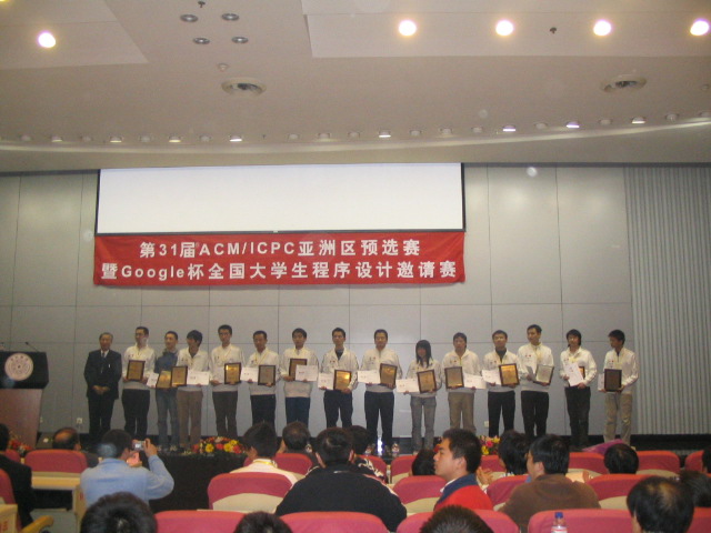 2006年第31届ACM/ICPC(国际大学生程序设计竞赛)亚洲区北京预赛暨Google杯于11月10—12日在清华大学举行,共有来自全国的43支队伍参加了复活赛,68支队伍参加了最后的现场赛。我校有三支代表队参赛,经过复活赛、现场赛,其中由计算机学院和软件学院三名学生组成的ACMore队(队员:卢闰明、段根全、王洋)获得陕西省唯一的铜奖,另外两支代表队获得优胜奖。