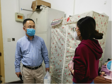 随后,学院工作组一行分别到竹园1号楼、2号楼和3号楼公寓学生宿舍,走访了解已返校入住学生的假期生活学习状态、疫情期间思想动态、返校途中个人防护、寝室卫生消毒等情况。崔江涛谈到,疫情对学生各方面的影响是客观存在的,学院要以返校学生为窗口,尽可能全面地详细掌握当前教育教学环节面临的问题与挑战,制订科学合理有效的工作方案与实施计划,确保学院人才培养质量。