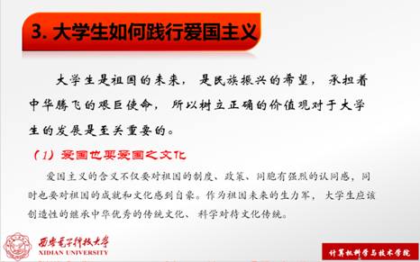 张哲同志谈话中提到不能空谈爱国,要付诸于行动,不计较个人得失。爱国主义在社会生活中既是一种思想意识,也是一种实践活动。爱国不是一种形式,不是一个口号,需要采取实际行动来践行。每一个公民各司其职,就是最务实的爱国行为,社会才能和谐有序。对我们大学生而言,勤奋学习,刻苦钻研是爱国;身强体健,积极乐观是爱国;尊师重道,孝敬长辈是爱国;遵纪守法,洁身自爱也是爱国。爱自己,爱家人,爱老师,爱同学,爱社会,都是爱国的一种方式。