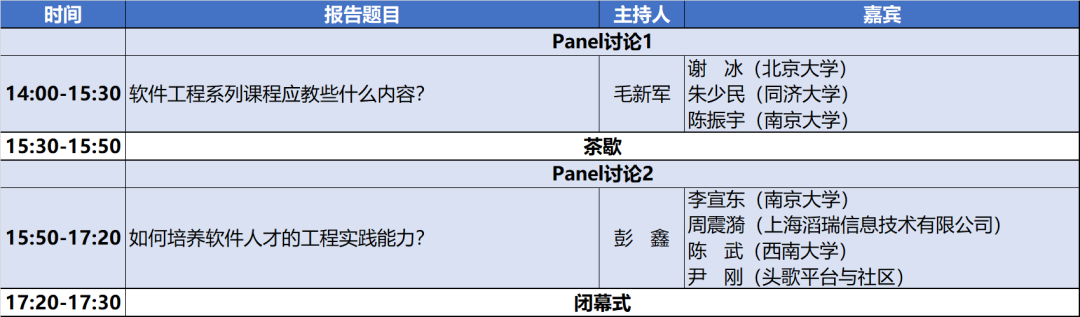 本次会议邀请了来自软件工程教育界、学术界和产业界的讲师、学者和专家,共同围绕软件工程教育和人才培养,分享教学经验、讨论教学问题、共享教学资源,推介教学案例、工具和平台,促进教育界与学术界、产业界的合作,并就共同关注的话题进行开放讨论。研讨会为期一天,内容包括特邀报告、青年教师秀和Panel讨论三个环节。