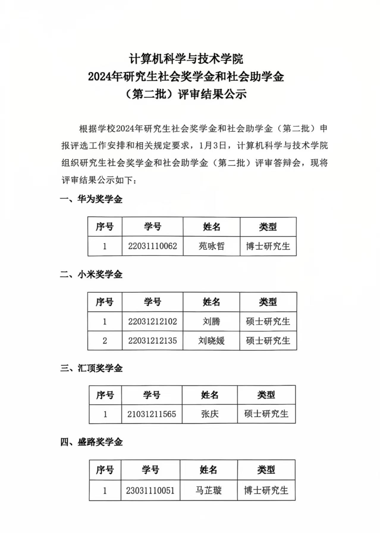 今年会官方网站2024年研究生社会奖学金和社会助学金(第二批)评审结果公示