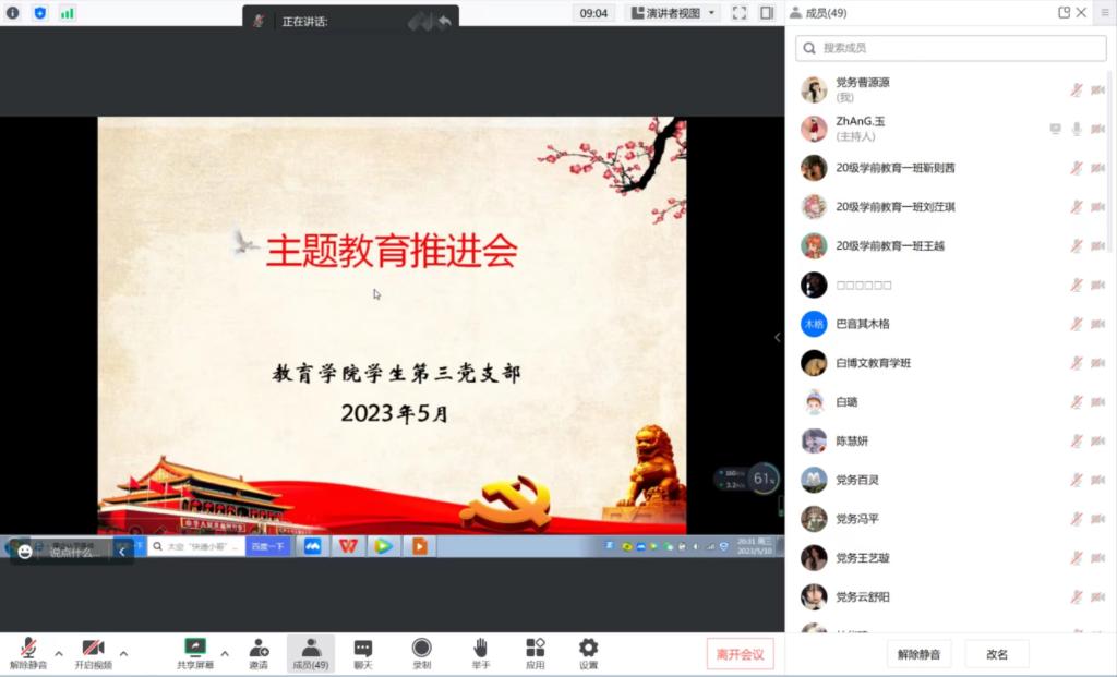 2023年5月10日晚,yl7703永利官网学生第三党支部召开学习贯彻习近平新时代中国特色社会主义思想主题教育推进会。学生第三党支部支部书记张玉同志主持会议并作动员讲话,强调开展学习贯彻习近平新时代中国特色社会主义思想主题教育是党的二十大作出的重大部署,全体党员要坚持学习贯彻习近平新时代中国特色社会主义思想,坚决按照学校、学院党委要求,切实开展主题教育,深刻认识开展主题教育的重要意义,准确把握主题教育的目标要求,力争通过理论学习、调查研究、学习探讨、微党课宣讲等方式,深化支部党员对“强国有我,请党放心”的认识与实践,不断坚定信仰、主动担当、提升本领、追求卓越。
