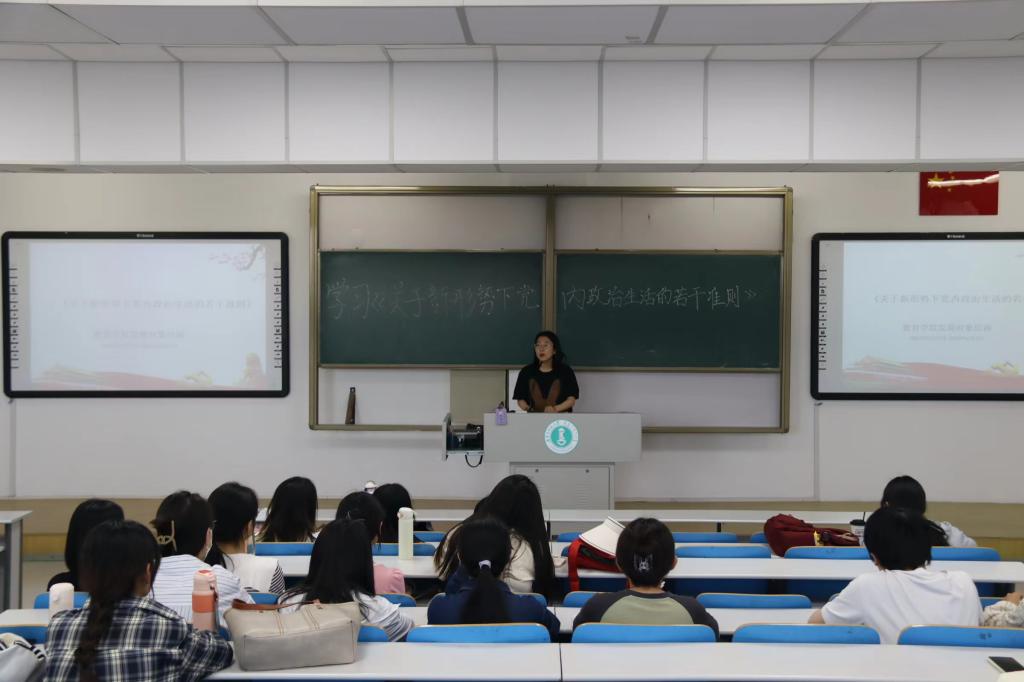 为深入学习贯彻习近平新时代中国特色社会主义思想和党的二十大精神, 依据发展对象培训日程安排,yl7703永利官网于6月2日在行知楼210教室开展学习《关于新形势下党内政治生活的若干准则》相关培训,本次培训由张玉老师为大家进行讲解。
