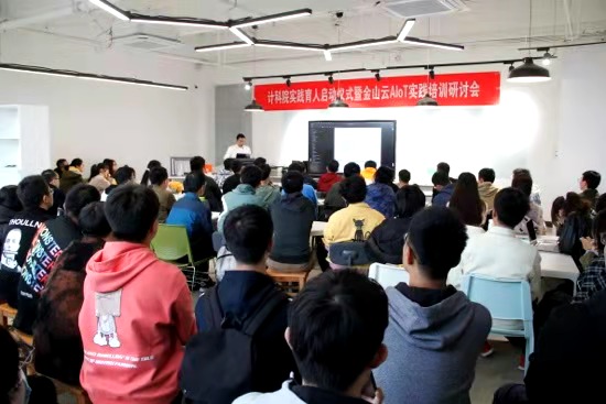 下午,金山云技术专家丁明辉、刘不凡在G楼308为80多名今年会官方网站的本科生进行了“金山云AIoT实验培训”,培训以“项目育人”为切入点,内容涉及:金山云智能家居系统架构,金山云智能家居模块接口API,金山云智能家居编程模式,金山云人工智能图像处理接口以及使用模式等内容。培训会总共持续了两个多小时,期间,同学们和金山云专家进行了热烈的讨论,中心教师黄伯虎、李航等也一并参与了问题解答。