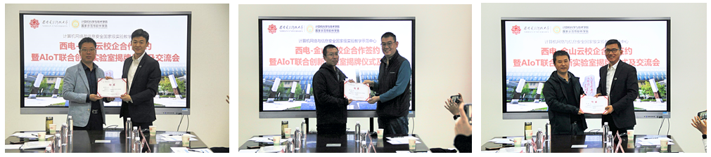 接着,双方代表共同签署了“产教共建合作协议”签约仪式,并为“西电-金山云AIoT联合创新实验室”揭牌,对推进学院、实验示范中心在校企协同育人及实践育人方面有着积极重要的意义。