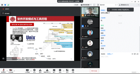 1月7日下午,中国长城公司技术总监陈雄带来了《着力信创核心技术突破,保障数字政务安全》,由黄伯虎老师主持报告。陈老师从近年来的信息安全形势着手,援引自身丰富的方案架构与系统集成经验,为同学们梳理了信创产业体系、产品谱系,并以长城公司为例,为大家介绍了信创核心产品以及应用案例等。本次报告还吸引了众多专业领域内的老师参与,大家在问答环节进行了诸多有深度的交流,同学们也是获益匪浅。