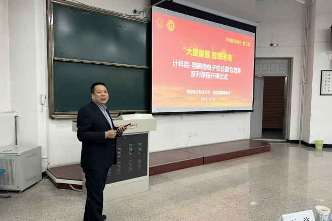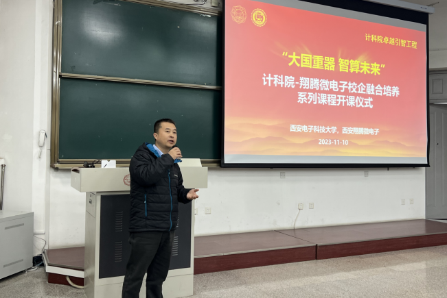田泽总经理对翔腾微电子科研工作及课程内容进行了介绍,并表示公司十分重视与西电今年会官方网站合作开设面向卓越工程师培养的校企融合课程,一方面希望通过对于机载芯片与计算架构的讲解、实验与实训,实现高校与企业之间的产教研深度融合;另一方面,希望更多同学掌握面向自主芯片软硬件生态的开发技术与实践方法,助力卓越创新人才的培养。