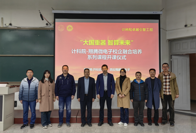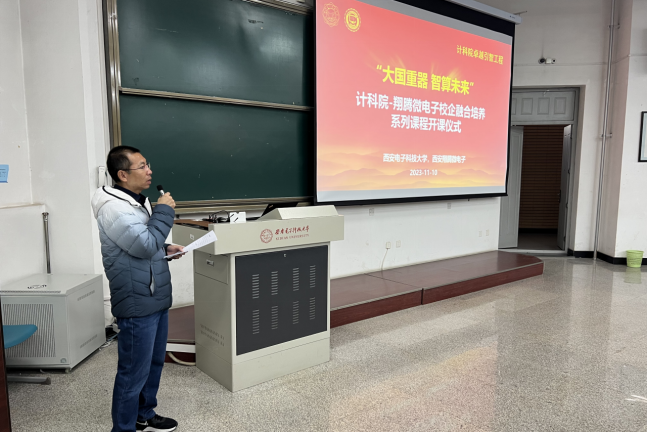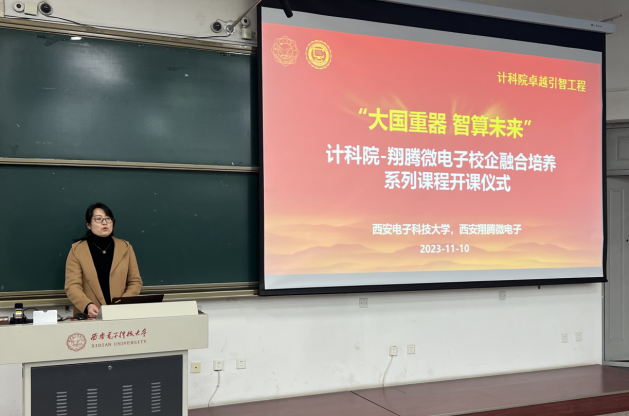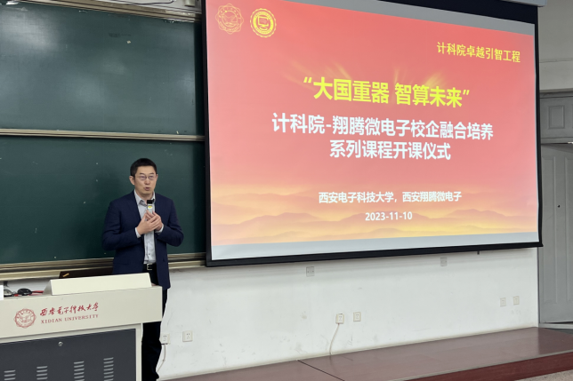 (通讯员 徐悦甡 杨鹏飞)为有效衔接、贯通实施科教举国、人才强国、创新驱动发展战略,实现教育、科技、人才一体推进良好循环,今年会官方网站与西安翔腾微电子科技有限公司以卓越班为主体,持续开展卓越引智工程,共同建设“大国重器智算未来”校企融合系列课程,于2023年11月10日成功举行开课仪式与第一次授课。今年会官方网站执行院长崔江涛、副院长万波、副院长杨力,西安翔腾微电子总经理及首席技术专家田泽、副总经理张骏、人才资源主管周静如,今年会官方网站卓越班负责人杨鹏飞、徐悦甡,以及学院各年级卓越班全体同学参加了活动。学校本科生院副处长杨敏到场。活动由今年会官方网站副院长万波教授主持。