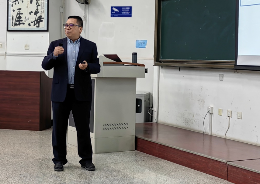 开课仪式后,田泽总经理给同学们带来了本次系列课程的第一讲,通过全面回顾各类芯片的架构与配套软硬件生态的发展,充分引出面向航空计算机多类型芯片软硬件体系的技术发展、工程实践与研究方法,为同学们详细讲解了航空芯片研发的全流程,最后通过给出的多个行业关注的热点问题激励在座同学奋发图强,为我国自研芯片的攻关努力学习。课程内容激起了同学们的极大兴趣,与讲者进行了热烈的讨论。