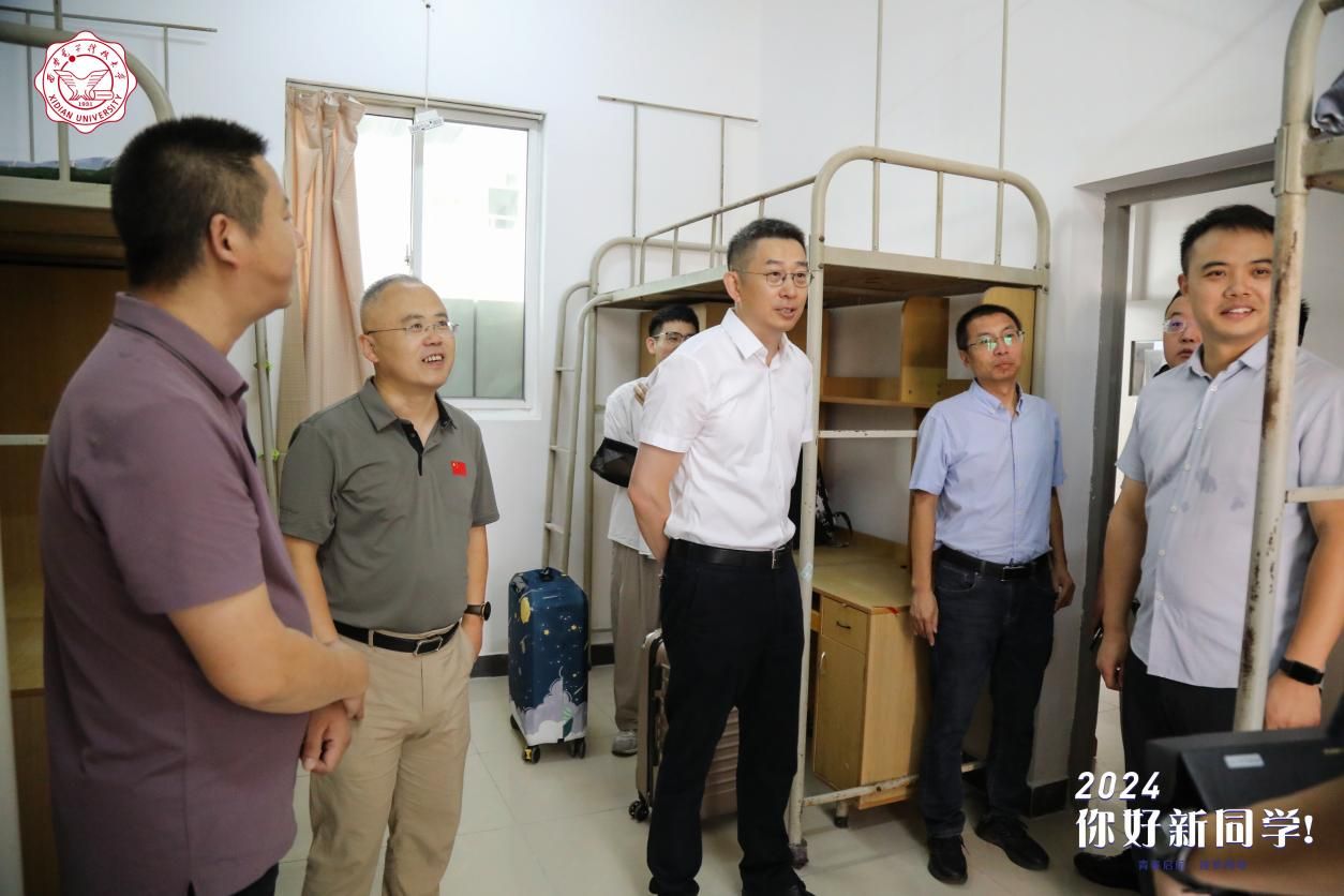 8月31日上午,今年会官方网站党委书记李青山、执行院长崔江涛、副院长万波、副院长李瑞,党委副书记黄成龙及新生辅导员,前往竹园3号楼学生公寓,走访部分学生宿舍,对新生表达关心和慰问。