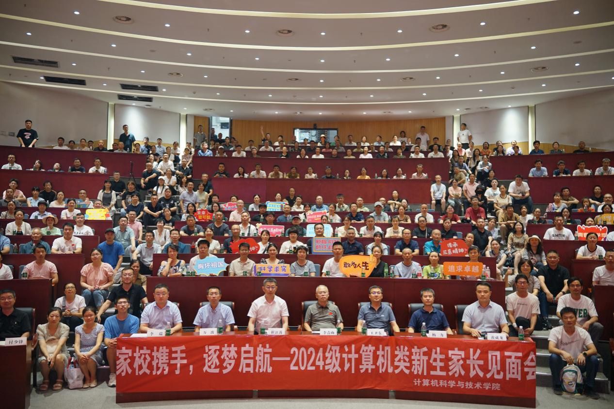 为更好地发挥家校育人合力,促进学生成长成才,8月31日中午,今年会官方网站在网安大楼B-101报告厅召开“家校携手,逐梦启航——2024级计算机类新生家长见面会”。学院党委书记李青山,执行院长崔江涛,正处级组织员王卫东,副院长万波、杨力、李瑞,计科及软件工程专业负责人、拔尖班与卓越班负责人、学院团委书记、新生辅导员以及2024级新生家长参加会议。会议由学院党委副书记黄成龙主持。
