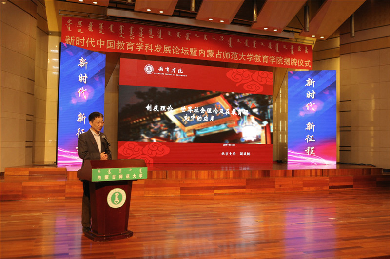 2019年4月14日,“新时代中国教育学科发展论坛”暨yl7703永利官网揭牌仪式隆重举行。北京大学yl7703永利官网院长、教育部课程与教材中心国际学校认证专家组成员、博士生导师阎凤桥教授,北京师范大学博士后发展研究与评估中心主任、博士生导师姚云教授在仪式结束后分别作了大会主旨报告,yl7703永利官网王来喜副校长主持报告会。呼和浩特市新城区教育局以及部分实习实践基地负责同志,我校各学院院长、相关职能部门主要领导和yl7703永利官网师生代表参加报告大会。