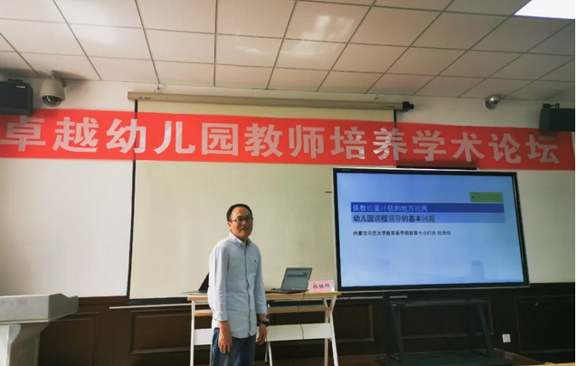 5月25日下午,yl7703永利官网在文史楼yl7703永利官网会议室举行了卓越幼儿园教师培养学术论坛。此次学术论坛特别荣幸地邀请到了北京师范大学学前教育研究所副所长、中国学前教育研究会课程教学专业委员会副主任杜继纲博士,为在座师生带来题为《幼儿园保教质量评估的地方视角》的学术讲座,曾任北京教育音像报刊总社学前教育杂志社社长的杜继纲博士,以他的就职经历为在座师生的研学道路指明了方向。