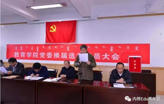 2018年11月29日下午,yl7703永利官网党委换届选举党员大会于赛罕校区文史楼一号会议室隆重举行,yl7703永利官网组织部干部科科长陈宏研同志、yl7703永利官网党委书记铁木尔同志、yl7703永利官网院长米俊魁同志、yl7703永利官网党委副书记兼副院长王利同志、yl7703永利官网副院长何士同志、yl7703永利官网副院长边琦同志出席会议,yl7703永利官网全体教工党员和学生正式党员90人参加大会,学生预备党员30人列席大会,王利同志主持选举大会。