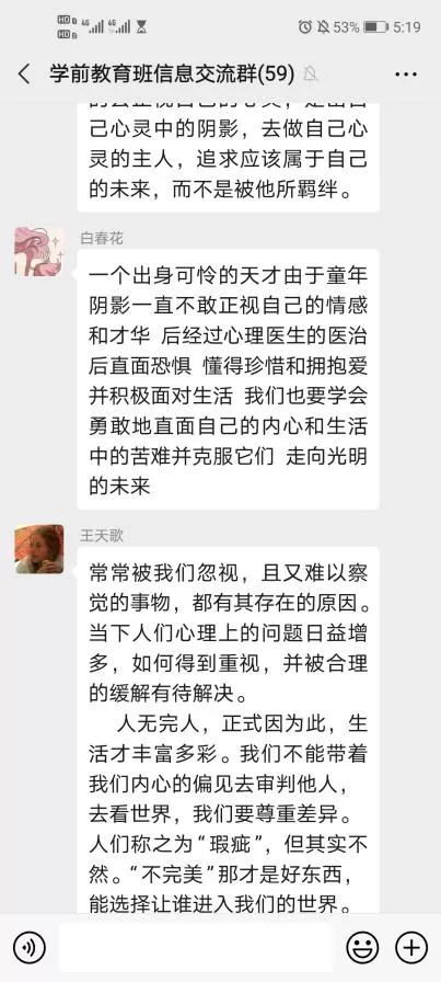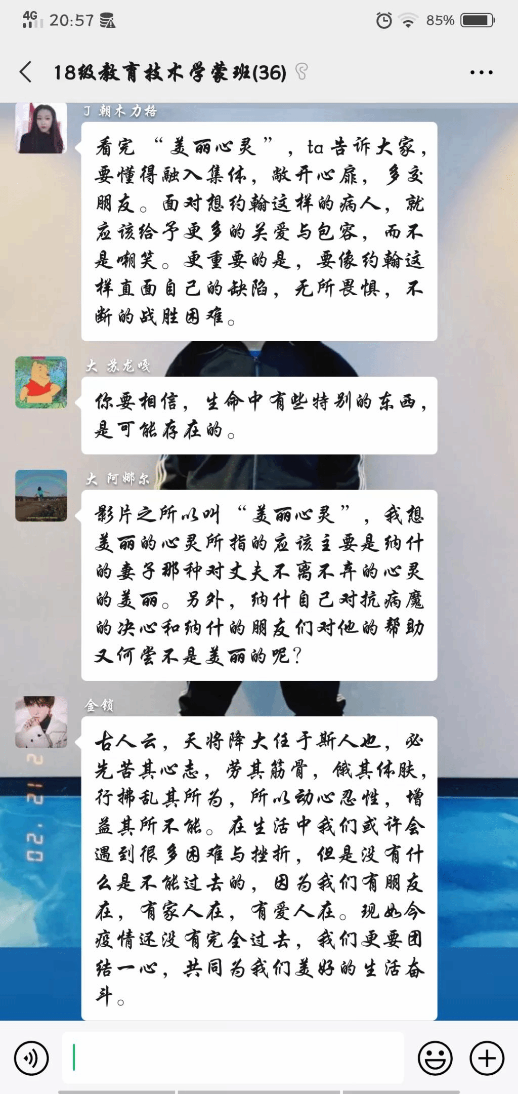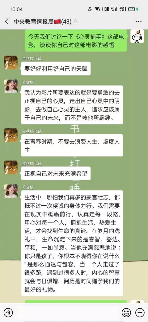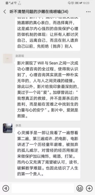 习近平总书记明确强调“动员各方面力量,全面加强心理疏导工作”,通过此次活动,同学们不仅在影片中舒缓了压力,缓解了由疫情带来的紧张情绪,还在交流讨论中敞开心扉,畅所欲言,提高了心理调控能力和防疫能力,为自己构筑了一道坚实且牢固的抗疫心理防线。
