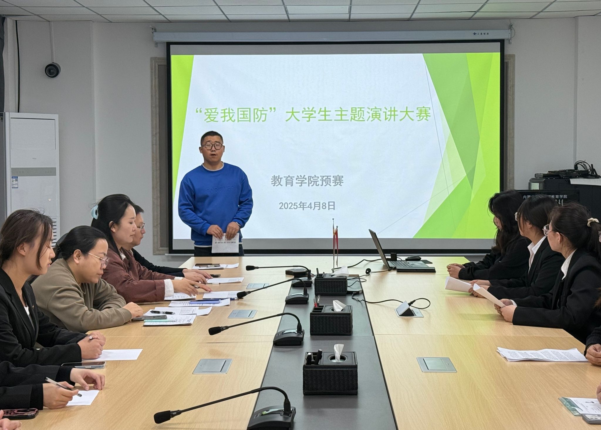 为深入学习领会党的二十大和二十届三中全会精神,贯彻落实习近平强军思想,不断增强国防教育的感召力和覆盖面,着力提升青年学生的国防意识和国防素养,大力营造支持国防建设、 热爱人民军队的校园文化氛围,4月8日,永利官网在A406会议室举办“爱我国防”大学生主题演讲比赛。yl7703永利官网党委副书记、副院长斯琴满都呼,学生工作与就业办公室胡建芳、乌亚汗、马德广老师参加并担任评委,比赛由马德广老师主持。