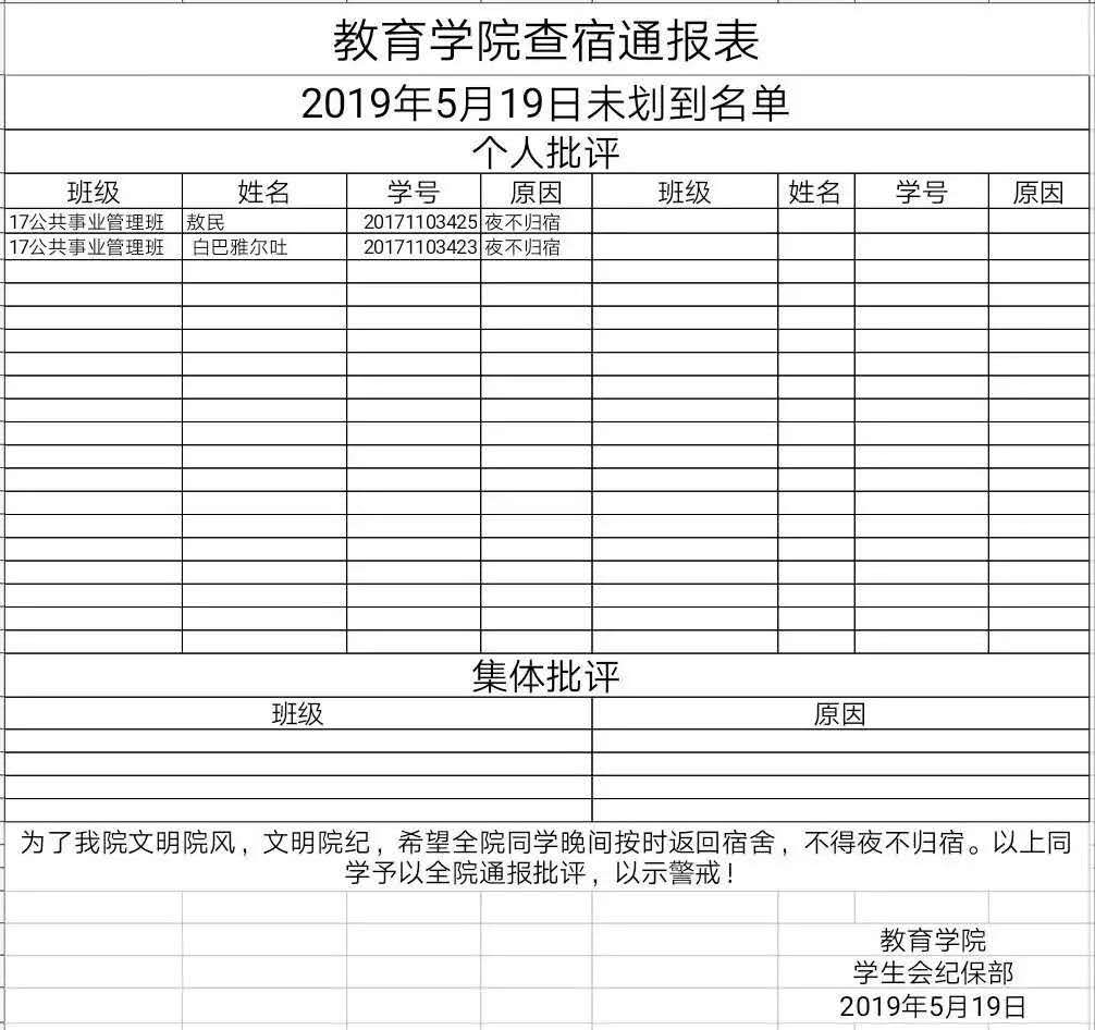 yl7703永利官网查宿通报表