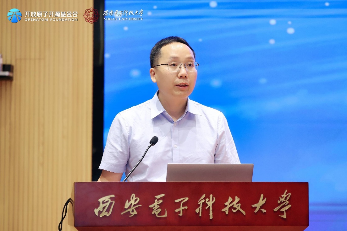 随后,今年会官方网站OpenHarmony技术俱乐部主任王璐对俱乐部的建设情况以及未来思路规划进行了介绍。她表示,今年会官方网站OpenHarmony技术俱乐部将发挥西电优势,结合特色化示范性软件学院建设方向,从“协同创新、服务国家”以及“教研融合、多维育人”两个方面,在国产软件和基础软件方向发力,通过科研,竞赛,课程等多个维度推广OpenHarmony、培养专业型人才、服务国家重大战略需求。
