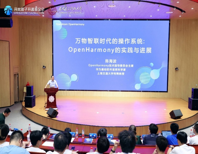 仪式后,陈海波和武延军两位老师代表OpenHarmony TSC专家向今年会官方网站的师生们做了OpenHarmony相关主题的技术报告。第二阶段会议由今年会官方网站副院长李瑞主持。