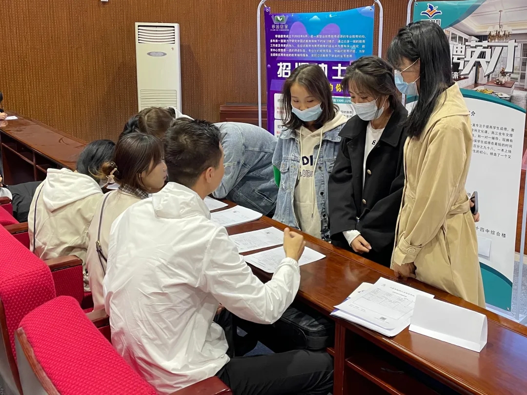 教师人才服务中心负责人、世纪众仁教育学校负责人、新东方招聘负责人分别进行宣讲,就近年教育行业就业行情、往年就业活动成效、机构未来的发展前景以及员工后续职业规划进行了详细的介绍。宣讲结束后,学院随即举办了毕业生专场招聘会。毕业生们向用人单位进行详细的咨询与了解,与企业负责人沟通交流,招聘单位也对同学们的疑问进行了详尽的解答。