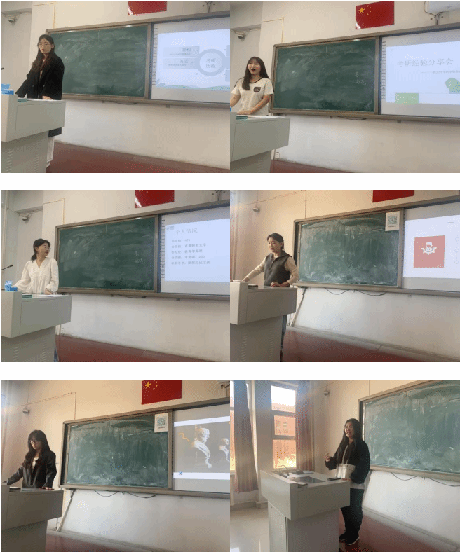 2021级六位优秀学生代表受邀分享考研及推免经验。耿小易同学提醒审慎择校择专业;张锦祎同学从复习规划、学科要点、时间管理等方面分享备考经验;郭佳同学结合自身考研经历,传授快速掌握新知识与发挥综合优势的方法;赵浩如同学聚焦心态建设,鼓励同学们以积极态度应对备考压力;苏欣同学推荐实用考研资料并强调高效时间管理;邬玉媚同学详解推免流程与关键节点。