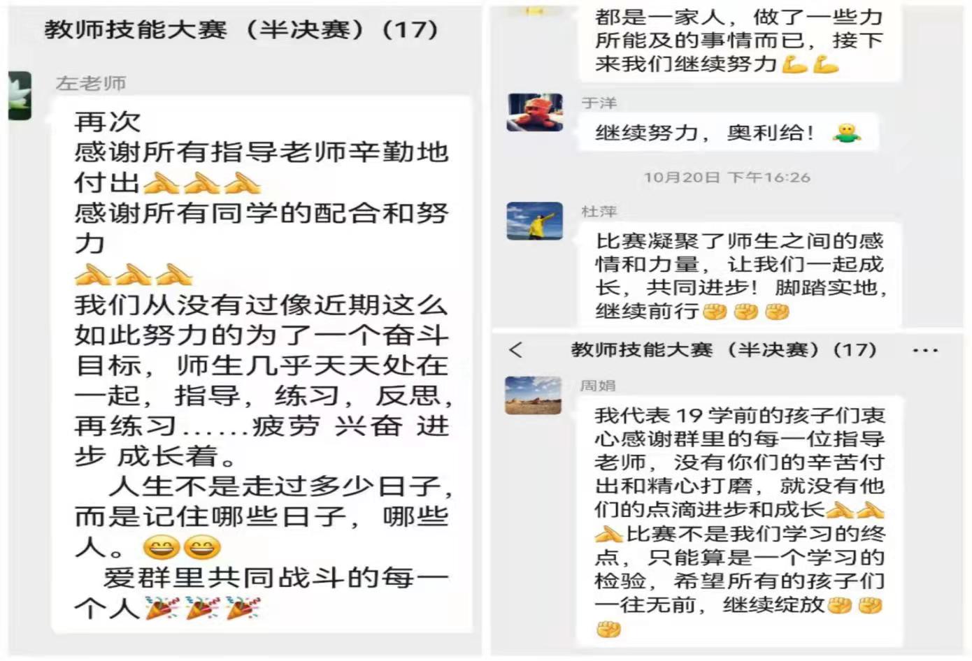 (图4:教师技能大赛群中老师们的感言,截图于2021年10月20日)