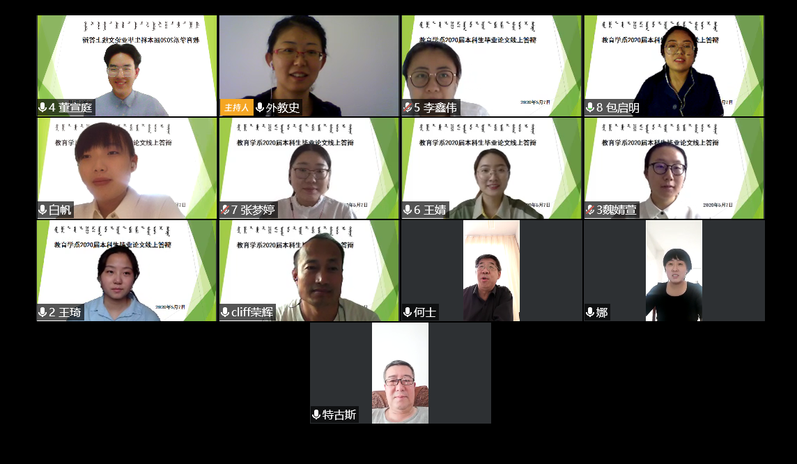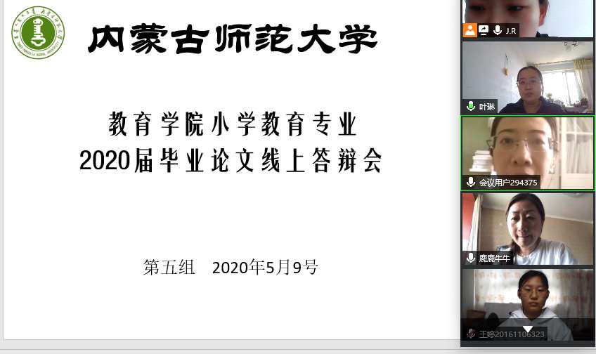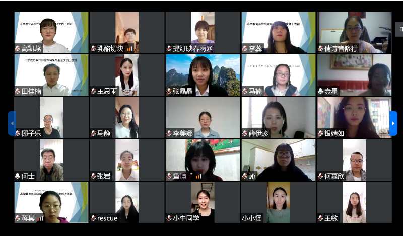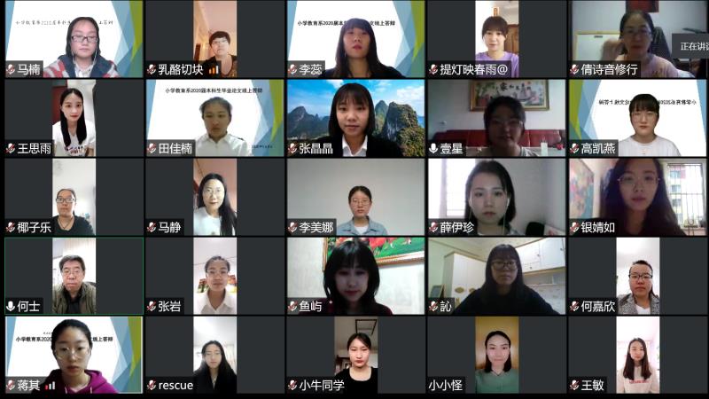 根据学校疫情防控期间毕业生相关工作要求,yl7703永利官网2020届本科毕业生进行在线论文答辩。教育学、学前教育、教育技术、小学教育、特殊教育和公共事业管理等专业在5月7日到5月9日三天陆续举行答辩会,先后有570余名本科毕业生参与答辩。