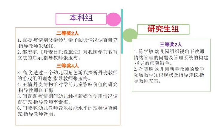此次获奖,是学前教育专业作为教育部卓越幼儿园教师培养计划改革项目承担者,在学校、学院的统筹领导下,在全面推进国家一流本科建设中,坚持立德树人,践行产出导向,提升人才培养质量的阶段性建设成果。