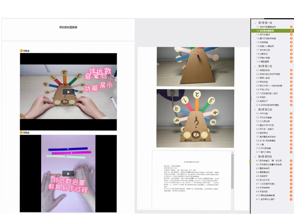 本次的比赛在学习通平台进行,将学生课件制作视频、功能讲解视频、课件说明书等上传至学习通平台,评委老师通过平台进行评审,各位评委老师严谨、认真,并给各位同学的作品提出了宝贵的意见与建议。本次比赛参与度强,作品种类丰富,作品有实物类、电子类等,制作精美细致而又富有趣味。本次比赛共收到各年级42组教具作品,评选出一等奖3名,二等奖6名,三等奖12名。