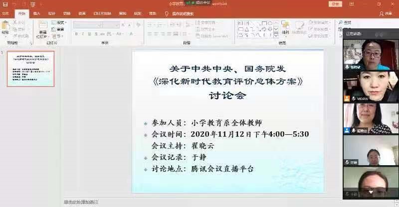 为深入学习贯彻落实中共中央、国务院印发的《深化新时代教育评价改革总体方案》,切实将思想和行动统一到党中央关于深化新时代教育评价改革的决策部署上来,深入推进新时代学校教育评价改革,2020年11月12日下午,yl7703永利官网组织全体教师和学生党员深入学习研讨《总体方案》,全面领会文件思想精髓。