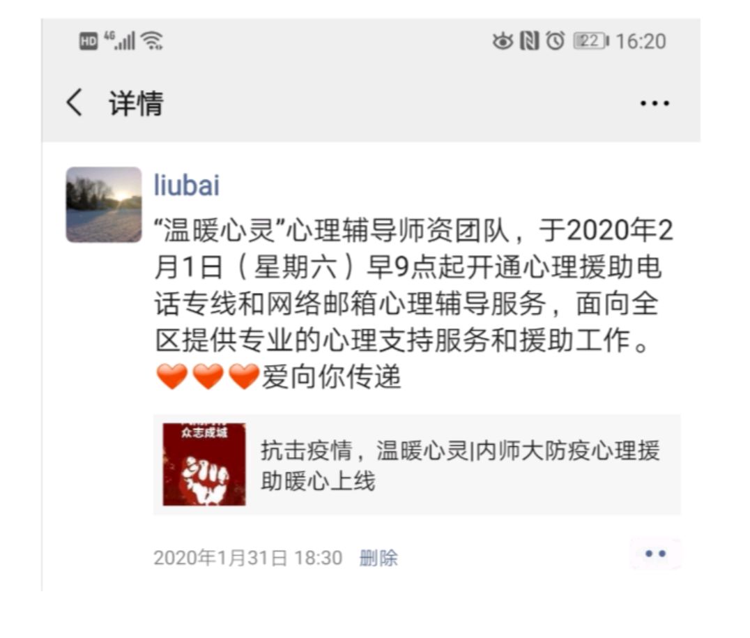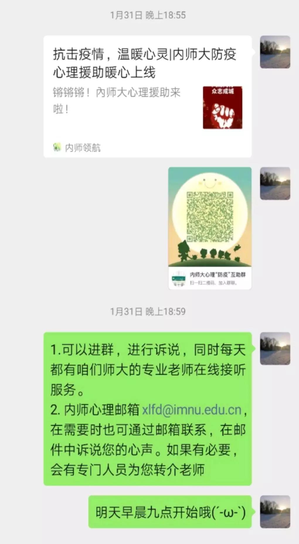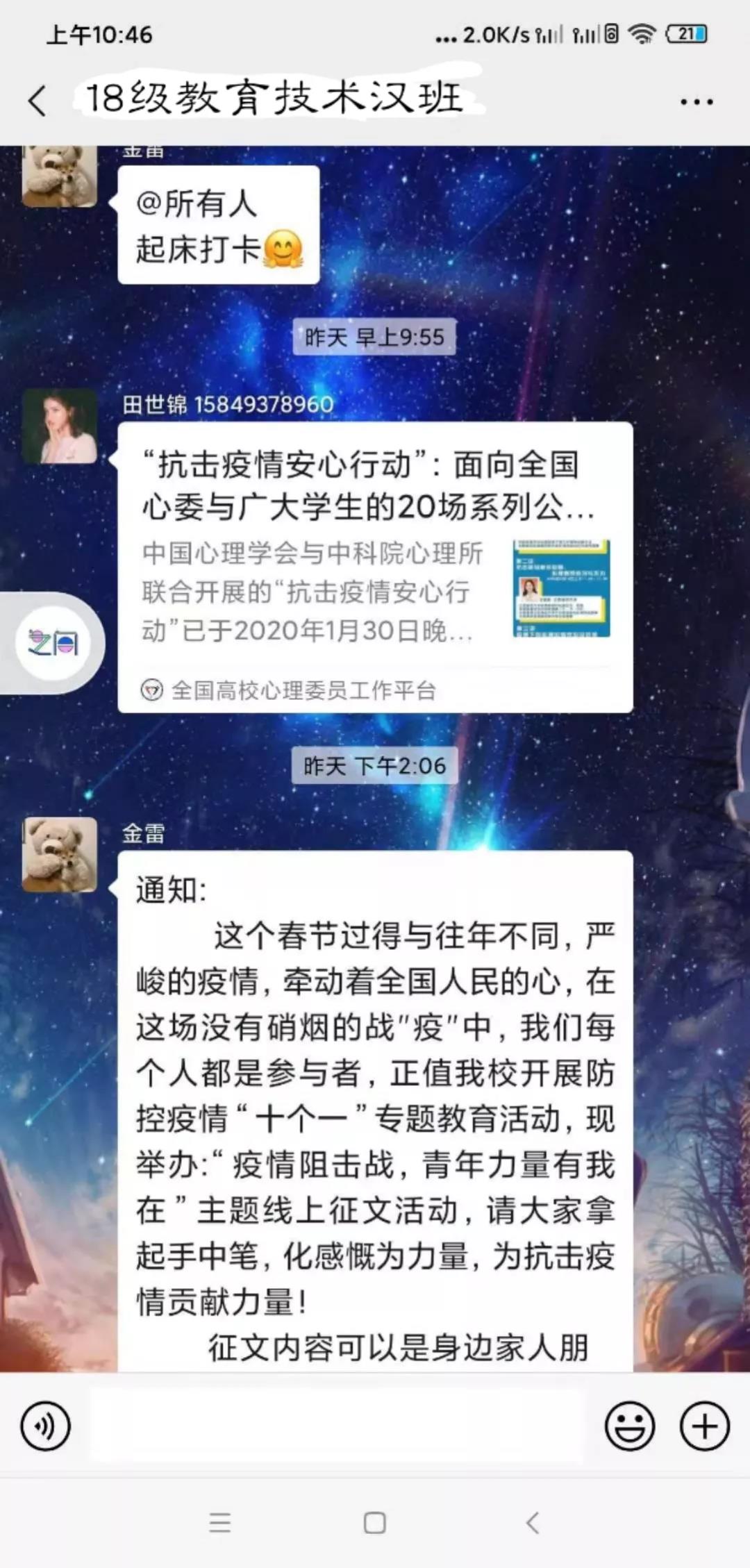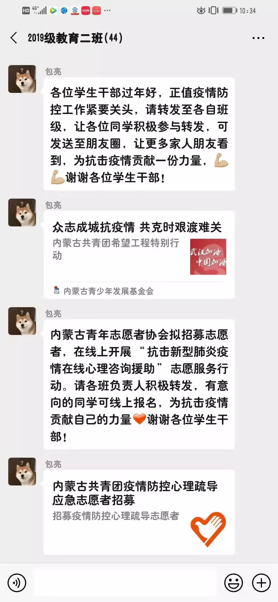 在这共克时艰的特殊时期,yl7703永利官网各班心理委员牢记自己的责任和使命,密切关注同学们的心理动态,积极对同学们进行心理辅导,转发心理疏导的相关文章,极大地缓解了同学们焦虑不安的心情。