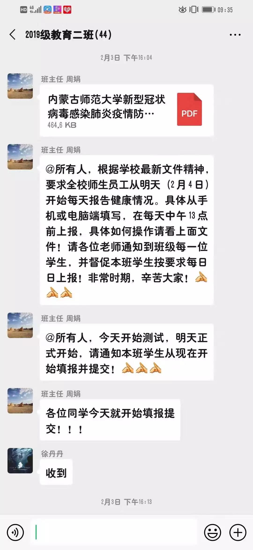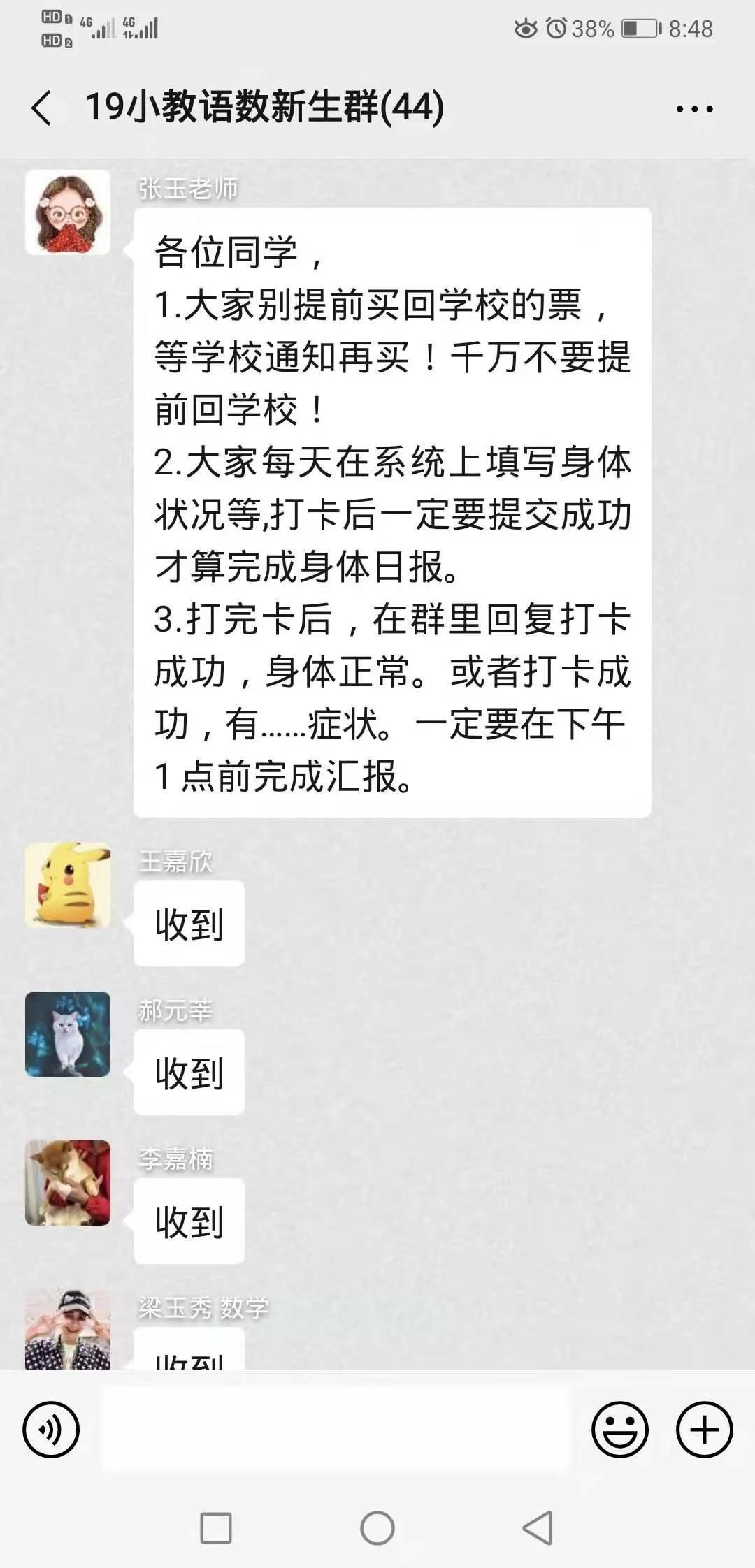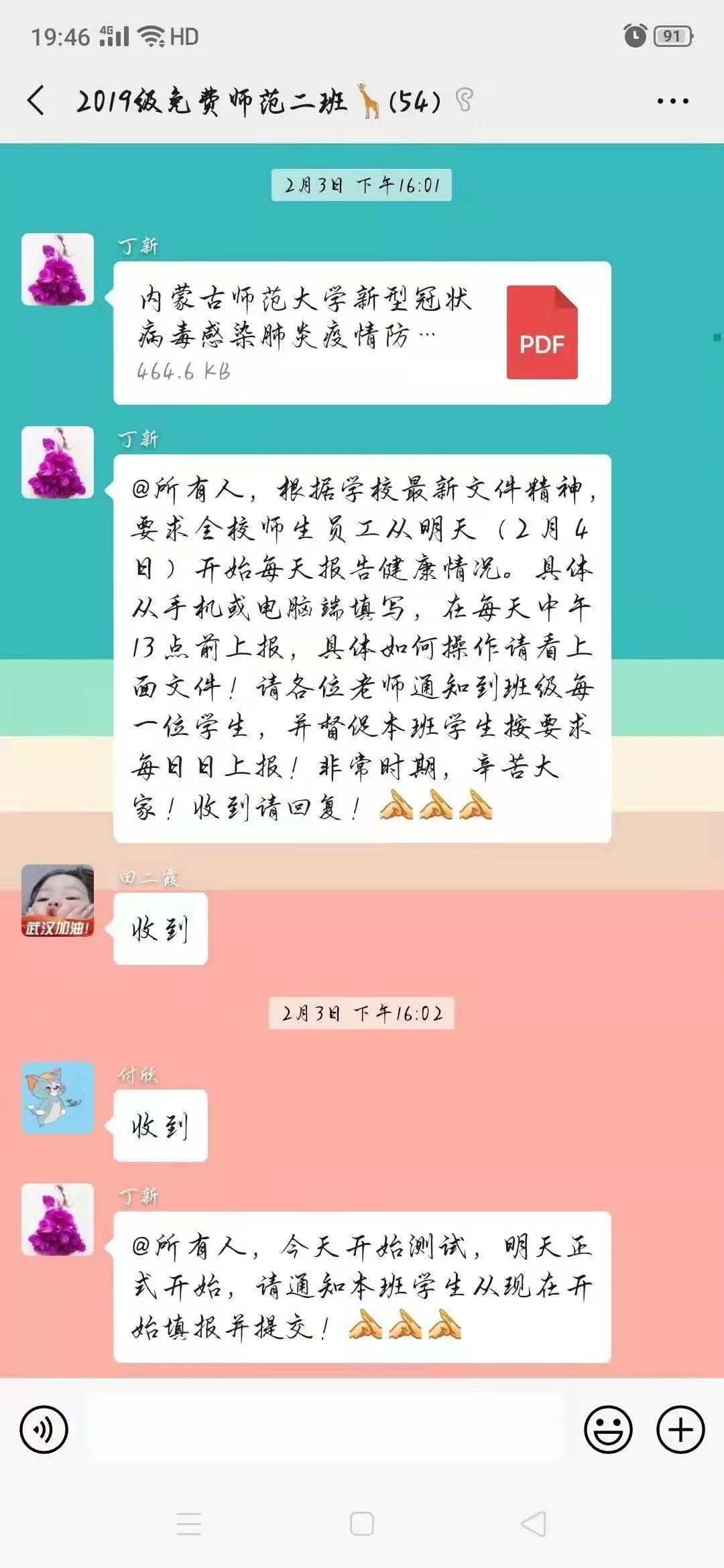 2020年在一场战“疫”中拉开帷幕,武汉成了全国乃至全球人最关注的一座城市,抗击疫情,刻不容缓。为贯彻落实自治区防疫最新要求和学校最新文件精神,切实做好防疫工作,yl7703永利官网认真执行“每日一报”打卡制度,全体师生按时填写提交“健康状况日报”,准确做好信息统计和信息上报工作,齐心协力防疫抗疫,以实际行动表明坚决打赢这场战争的决心,充分体现了永利官网对疫情防控工作的高度重视。