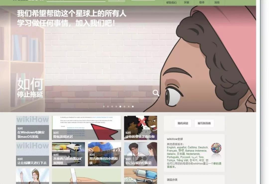 wikiHow免费提供各种学习、工作、生活小技能,在学习、工作、生活遇到的困难,你都可以利用这个网站来解决。网站内容包括各个方面:教育与交流、旅行、计算机和电子产品、饮食和休闲、宠物和动物、健康、艺术与娱乐、家庭生活、兴趣和手艺。总之是一个全面提升个人能力的综合学习网站。