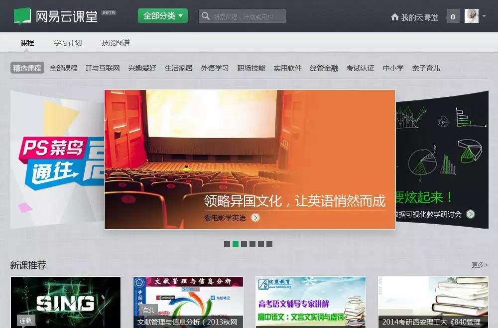 网易云课堂,是网易公司打造的在线实用技能学习平台,用户可以根据自身的学习程度,自主安排学习进度。网易云课堂立足于实用性的要求,与多家教育、培训机构建立合作,涵盖实用软件、IT与互联网、外语学习、生活家居、兴趣爱好、职场技能、金融管理、考试认证、中小学、亲子教育等十余大门类。