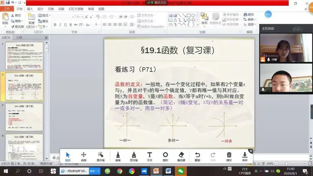 为引领广大青年学生深入学习贯彻习近平新时代中国特色社会主义思想,在严格遵守疫情防控要求的基础上,经过大量工作的紧张筹备和各组志愿者的共同努力,永利官网于8月1日正式开展2020年大学生志愿者暑期云端“三下乡”社会实践活动。在教学实施的过程中,志愿者通过腾讯会议和钉钉教学软件按时开展授课工作,工作人员对志愿者的工作进行不定时检查,确保教学工作的顺利进行。当天教学工作结束后,教学实施组工作人员组织志愿者对当日的教学工作进行了反思与交流。