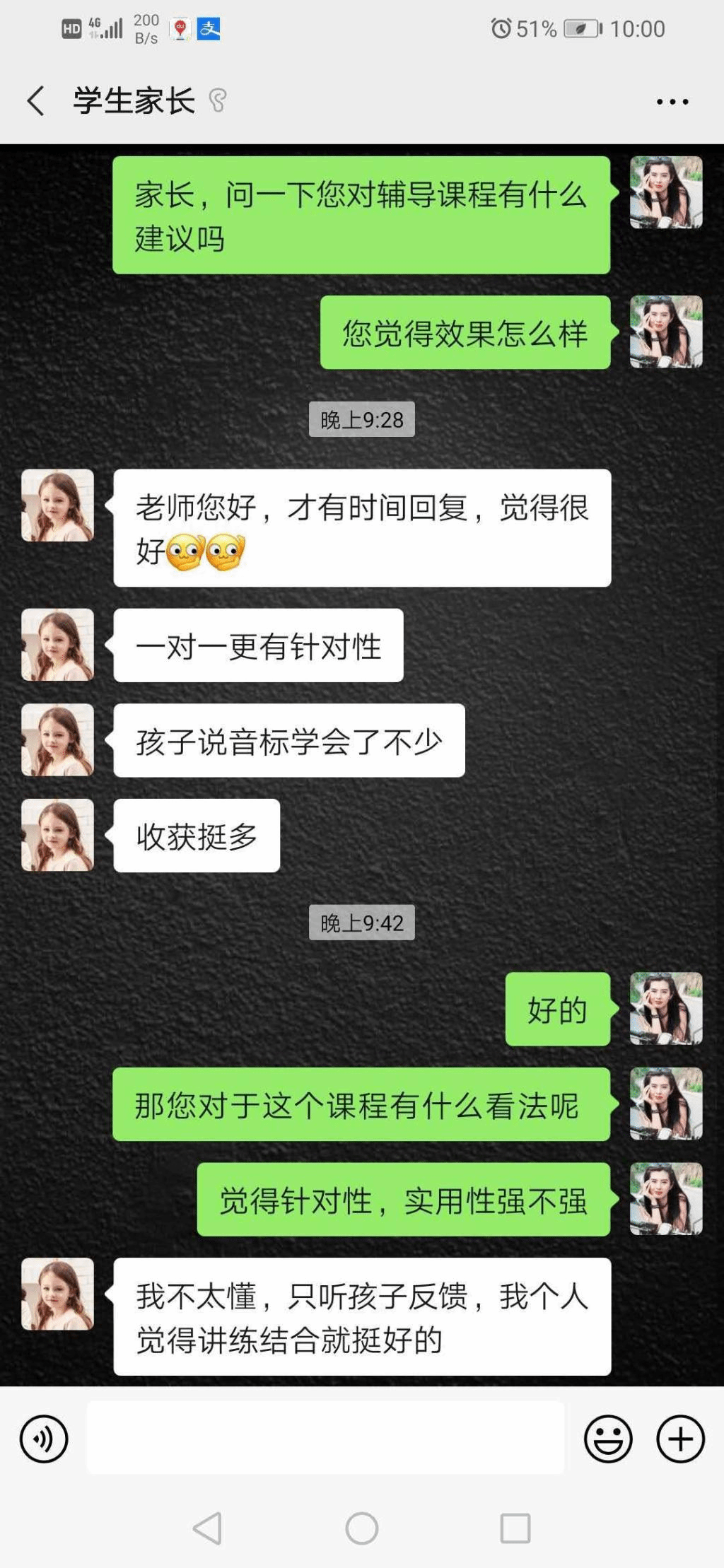 回访过程中,家长们积极配合,对教学工作给出了反馈。家长们普遍反映自己的孩子通过本次活动收获了很多知识,解决了许多学习上存在的问题,养成了好的学习习惯。除此之外,家长们对此次教学工作的灵活安排与实施给予了很好的评价,对教学活动中老师认真负责的态度和踏实仔细的辅导给予了肯定。家长们也为本次活动提出了宝贵的建议,有利于更好的完善实际的教学工作。
