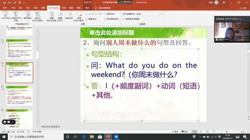 通过昨天了解的情况,廖同学处于五年级下升六年级上阶段,需要知识衔接和铺垫,于是选择复习五年级下册的单词和重点句型。