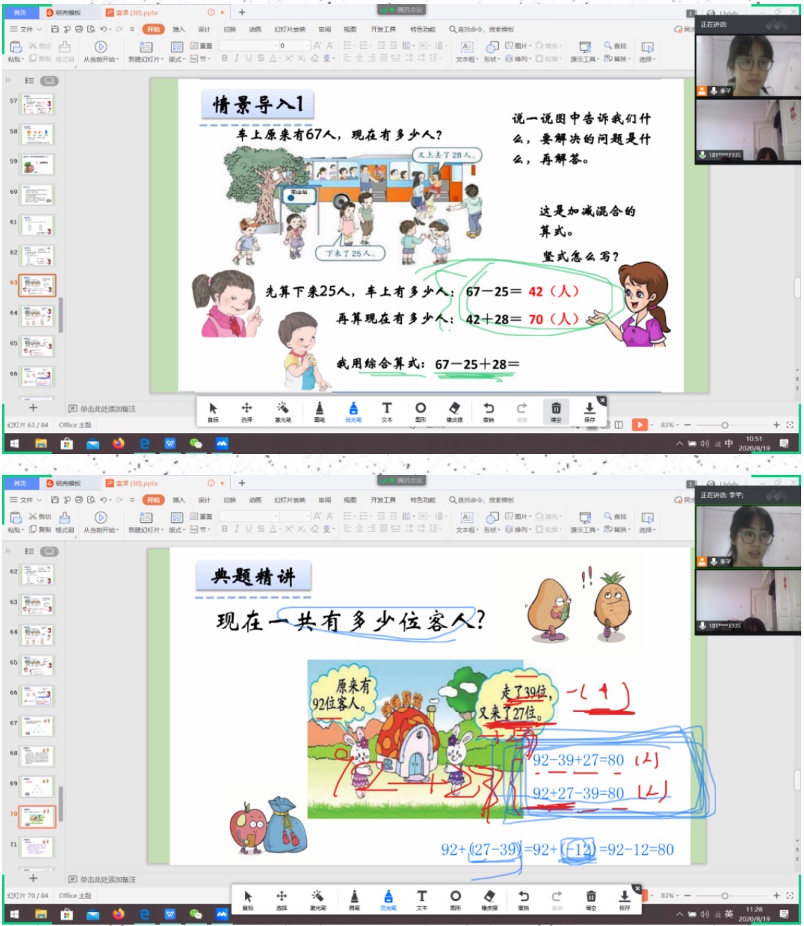 yl7703永利官网“三下乡”志愿实践活动于八月份开展至今,已历时19日,大部分工作已接近收尾,兴趣组的志愿者们仍按照教学计划按部就班地为学生们进行线上授课。志愿者们为学生讲解包括加减混合运算,英语音标、句式时态、发音规范等知识点,根据几次授课情况,志愿者们进行教学反思,发现学生问题、改进教学方式,师生共同交流成长、互帮互助。